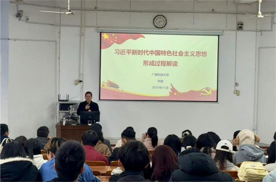 11月18日下午,学校党委常委、副校长李健为理学院师生作题为《习近平新时代中国特色社会主义思想形成过程解读》的专题报告。报告会由理学院党委书记陈玲玲主持。