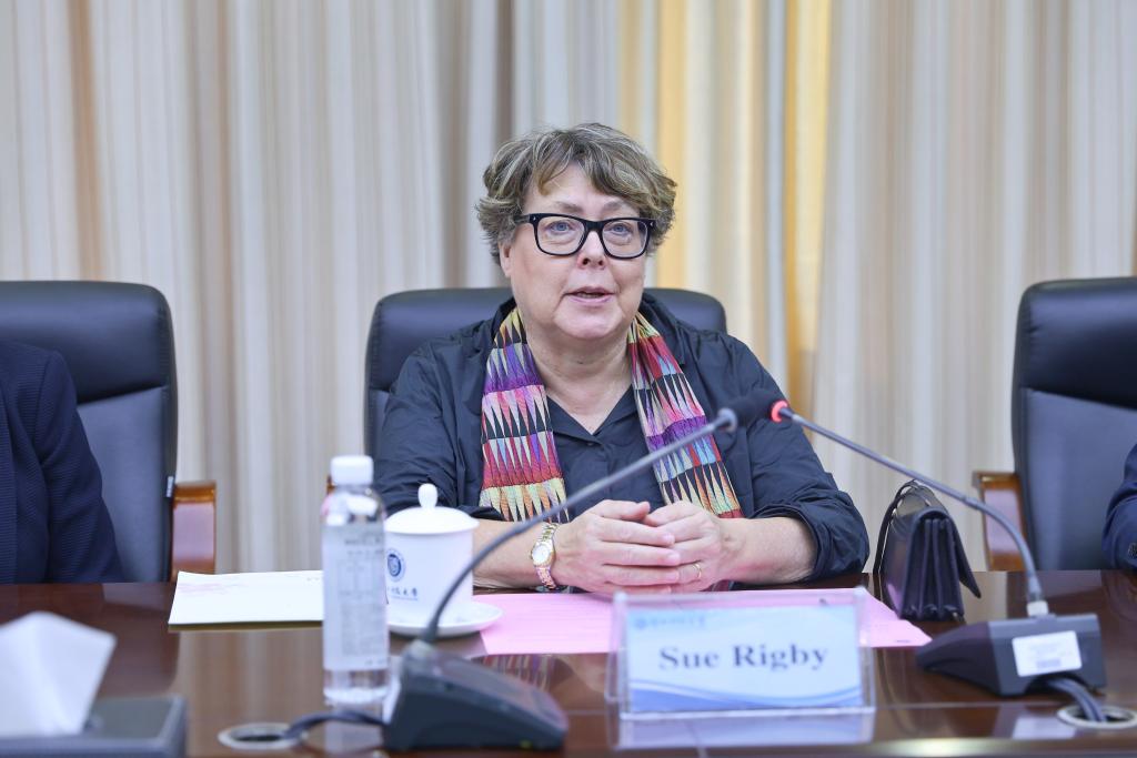 苏·里格比高度赞扬了两校在联合学院申报工作中付出的努力。她表示,两校有着稳固的合作基础和深厚友谊,联合学院的筹建工作一定能在双方的积极配合下顺利推进,通过两校优势互补的优质教育资源共同培育国际化工程技术人才。