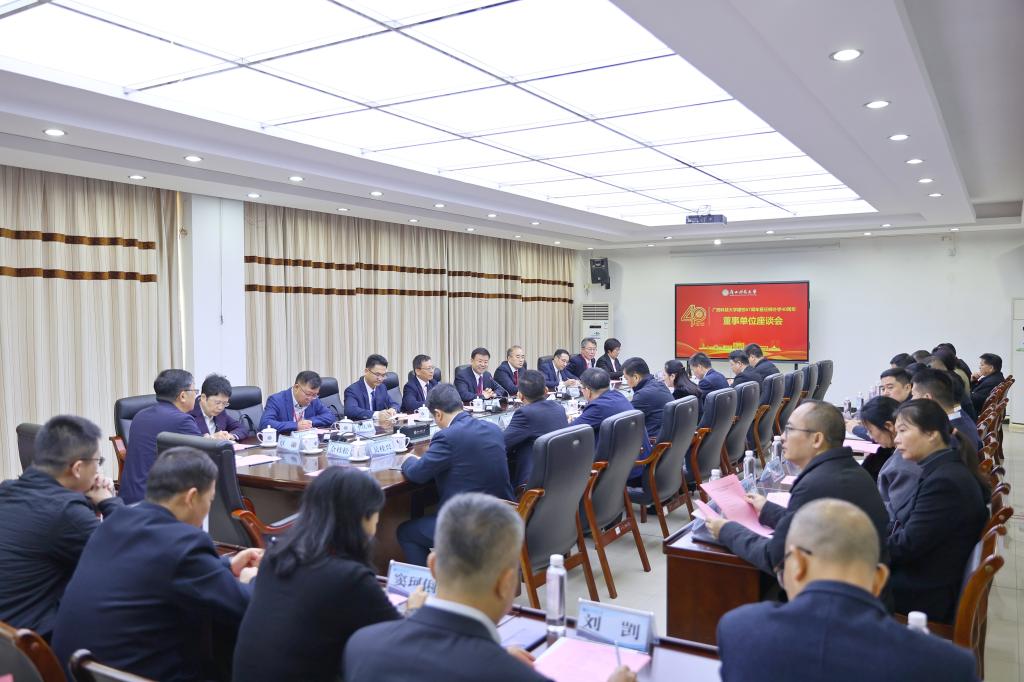 12月3日上午,学校在文昌校区办公楼6—1会议室召开建校67周年暨迁柳办学40周年董事单位座谈会。学校党委书记赵君主持会议并讲话。学校党委常委、副校长李健出席会议。37家学校董事会成员单位代表参加座谈。