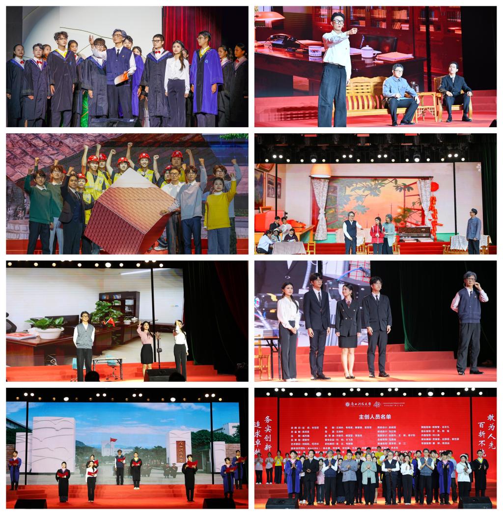 演出在全场经久不息的掌声和齐唱校歌中落下帷幕。观演师生表示,这部剧不仅是一次成功的艺术呈现,更是一堂生动深刻的爱校荣校校史教育课,让人深刻体会到“敢为人先、百折不挠,务实创新、追求卓越”的广西科大精神内涵。据悉,该剧后续将在校内进行常态化展演,并计划开展新生入学教育专场,成为传承学校精神文化、强化思政育人成效的重要载体。通过艺术的形式让校史“活”起来,让思政教育“动”起来,《薪火》必将为校园文化建设注入新的精神动力,激励广大师生在建设高水平应用型大学的新征程上接续奋斗。