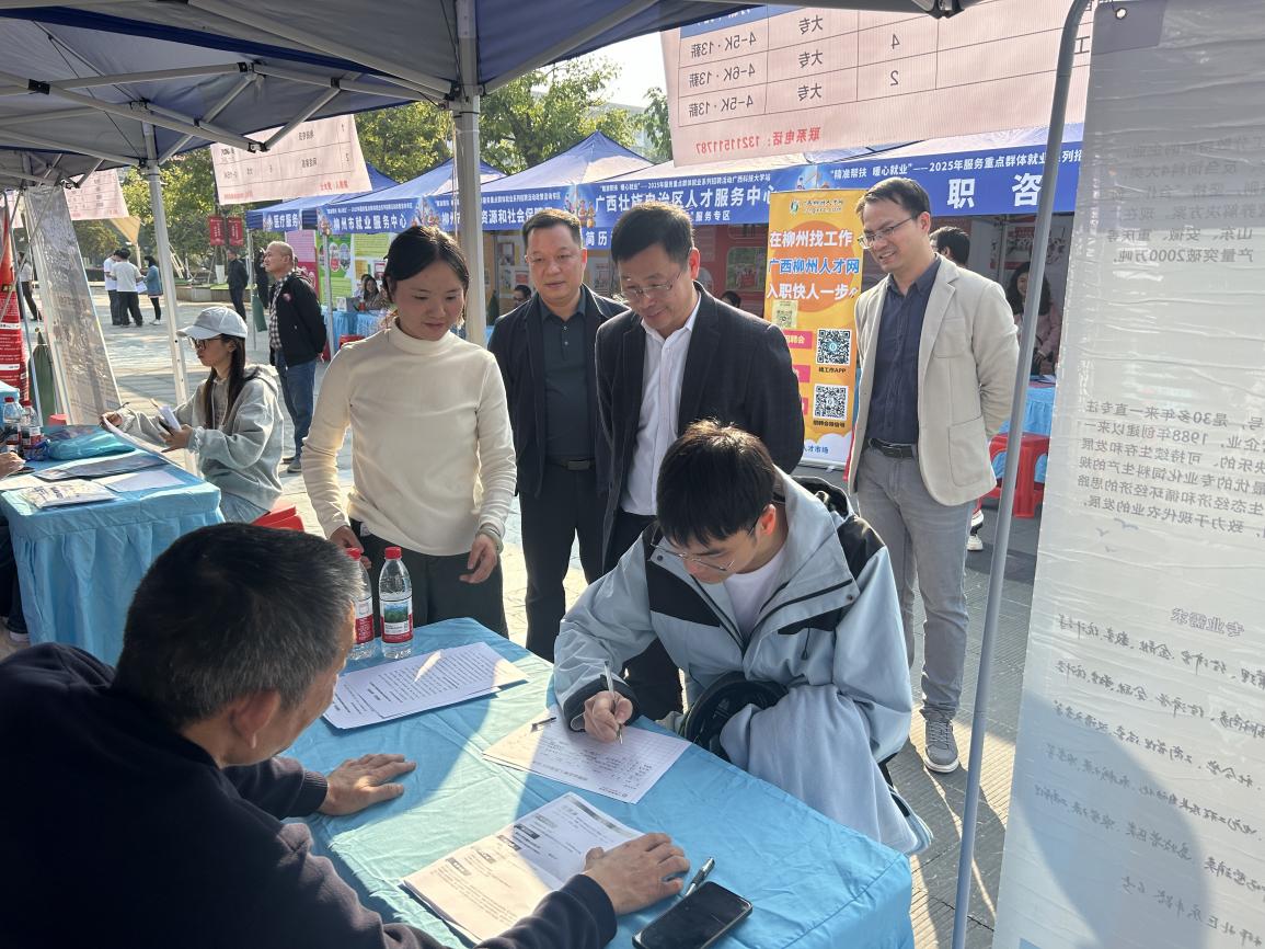 12月9日至10日,“精准帮扶,暖心就业”——2025年服务重点群体就业系列招聘活动(广西科技大学站)与“兴产聚才,‘园’梦启航”——2025年服务重点园区企业就业系列招聘活动(广西科技大学站)相继在我校文昌校区宗元北广场及柳东校区南广场顺利举行。学校党委副书记宾月景到招聘活动现场指导工作,深入了解企业发展与人才需求情况,推荐毕业生。