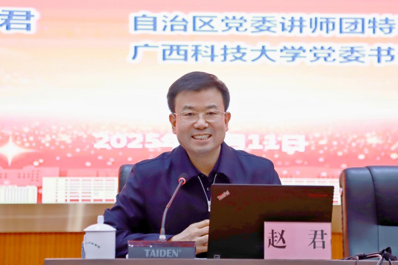 根据自治区党委的决策部署和自治区党委宣传部的统一安排,12月11日下午,自治区党委讲师团特聘教授(专家)、自治区第十二次党代表大会代表、学校党委书记赵君到柳州市检察院系统宣讲党的二十届四中全会精神。报告会由柳州市检察院党组书记、检察长方雷主持。柳州市检察院主会场、县区分会场500余名干部参加报告会。