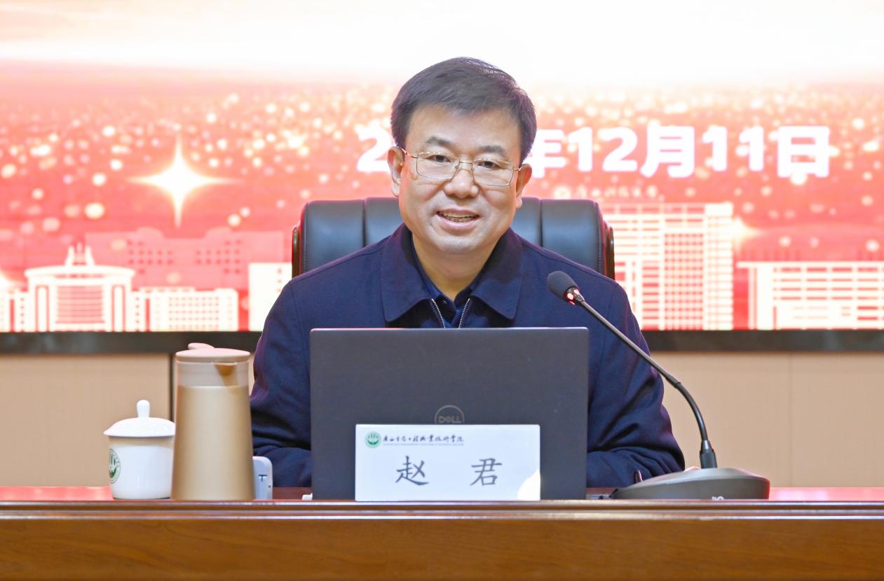 赵君指出,学习好贯彻好党的二十届四中全会精神是当前和今后一个时期全党全国的一项重大政治任务。地方高校要牢固树立“实干为要、创新为魂,用业绩说话、让人民评价”的鲜明导向,把立德树人的成效作为检验学校一切工作的根本标准,全面落实立德树人根本任务,坚持教育、科技、人才一体化,科学规划“十五五”发展目标,全面提升人才培养质量,为服务地方经济社会高质量发展贡献高校力量。