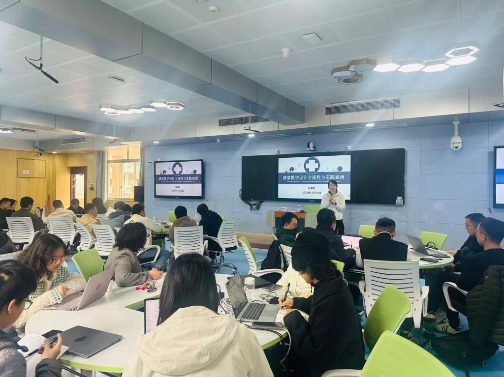 11月18日下午,评价中心在文昌校区4d203教室举办广西科技大学青年教师教学能力提升培训(第九期)。医学部教授、学校教育教学校本培训师冯书珍博士应邀以《优质教学设计全流程与实践案例》为主题作专题培训。共有来自各教学单位近70名教师参加。