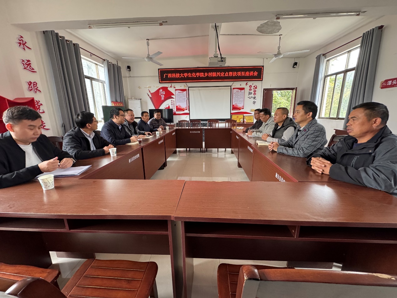12月5日,生化学院党委书记陈志波,党委副书记、纪委书记钟兴一行前往对口帮扶村开展乡村振兴工作专题调研与实地走访,并与潭头乡党委常委、副乡长韦建达,村“两委”干部以及驻村工作队进行座谈。
