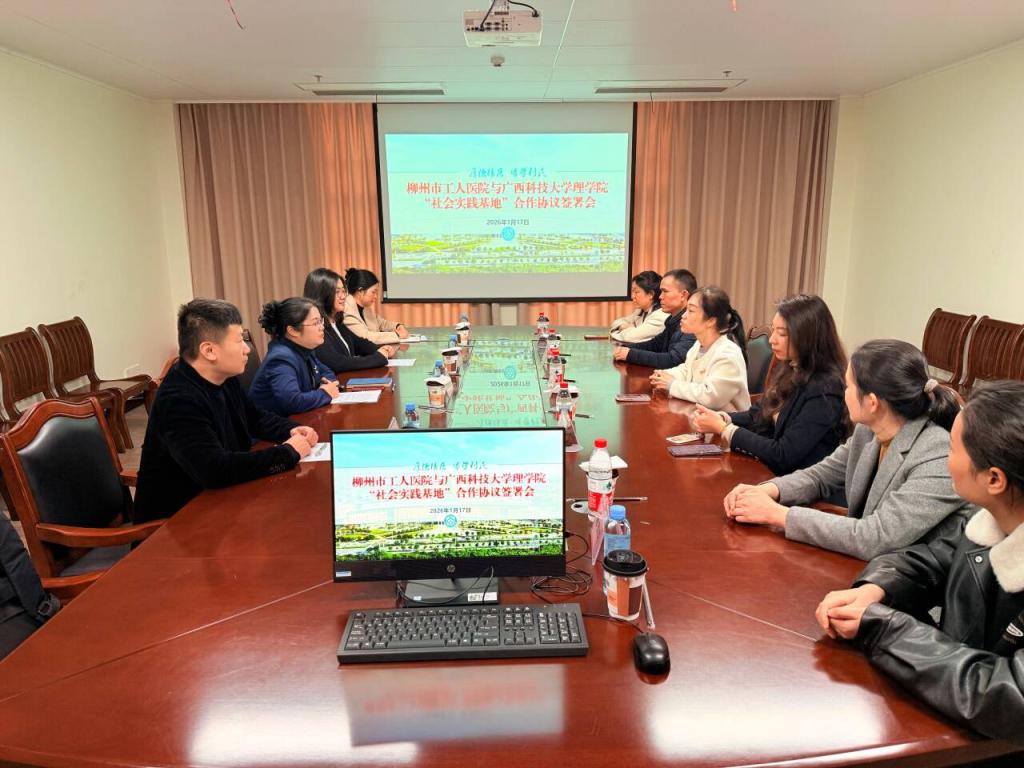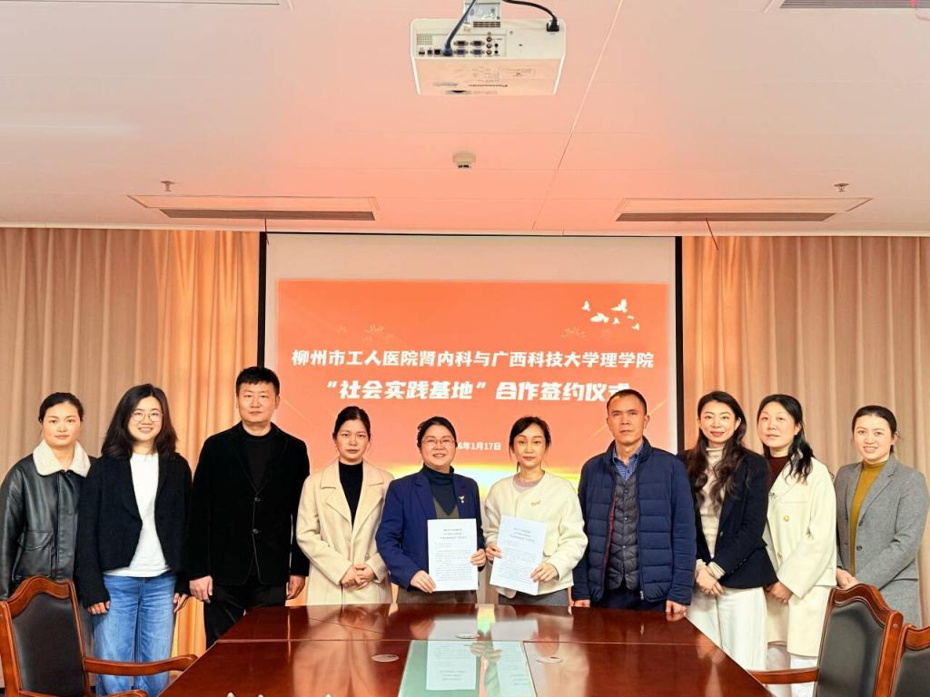1月17日,理学院与柳州市工人医院肾内科举行社会实践基地合作签约仪式。仪式在柳州市工人医院肾内科会议室举行。理学院院长庞建华、柳州市工人医院肾内科主任刘春晓出席仪式。