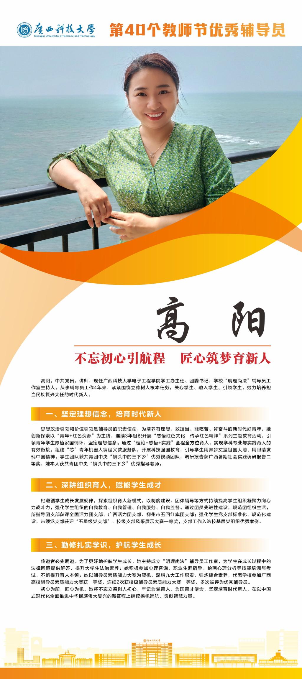 接下来,我们将推出系列报道,为大家介绍我校这些优秀教师。今天就让我们一起走近学校“优秀辅导员”高阳吧。