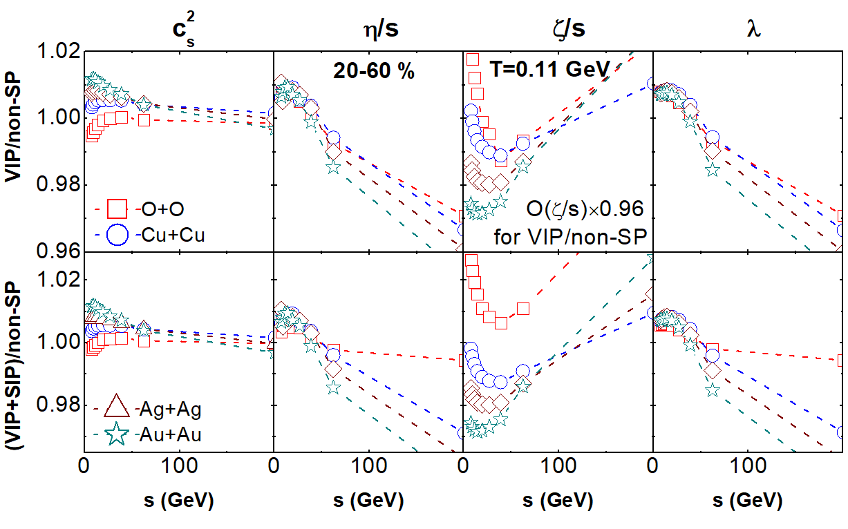 韦德贤博士研究团队提出基于自旋极化机制研究qcd相变及物态性质,该项工作通过研究o o、cu cu、ag ag、au au四种不同尺寸的碰撞体系,发现自旋极化对输运/热力学系数有不可忽略的影响。该项工作通过计算热涡旋、热剪切所诱发的自旋极化对输运/热力学系数的响应,得到了声速比率、体剪切系数比率的能量非单调性特征以及体系尺寸标度律的结果,为qcd相图结构研究提供了一种新颖的理论方法。