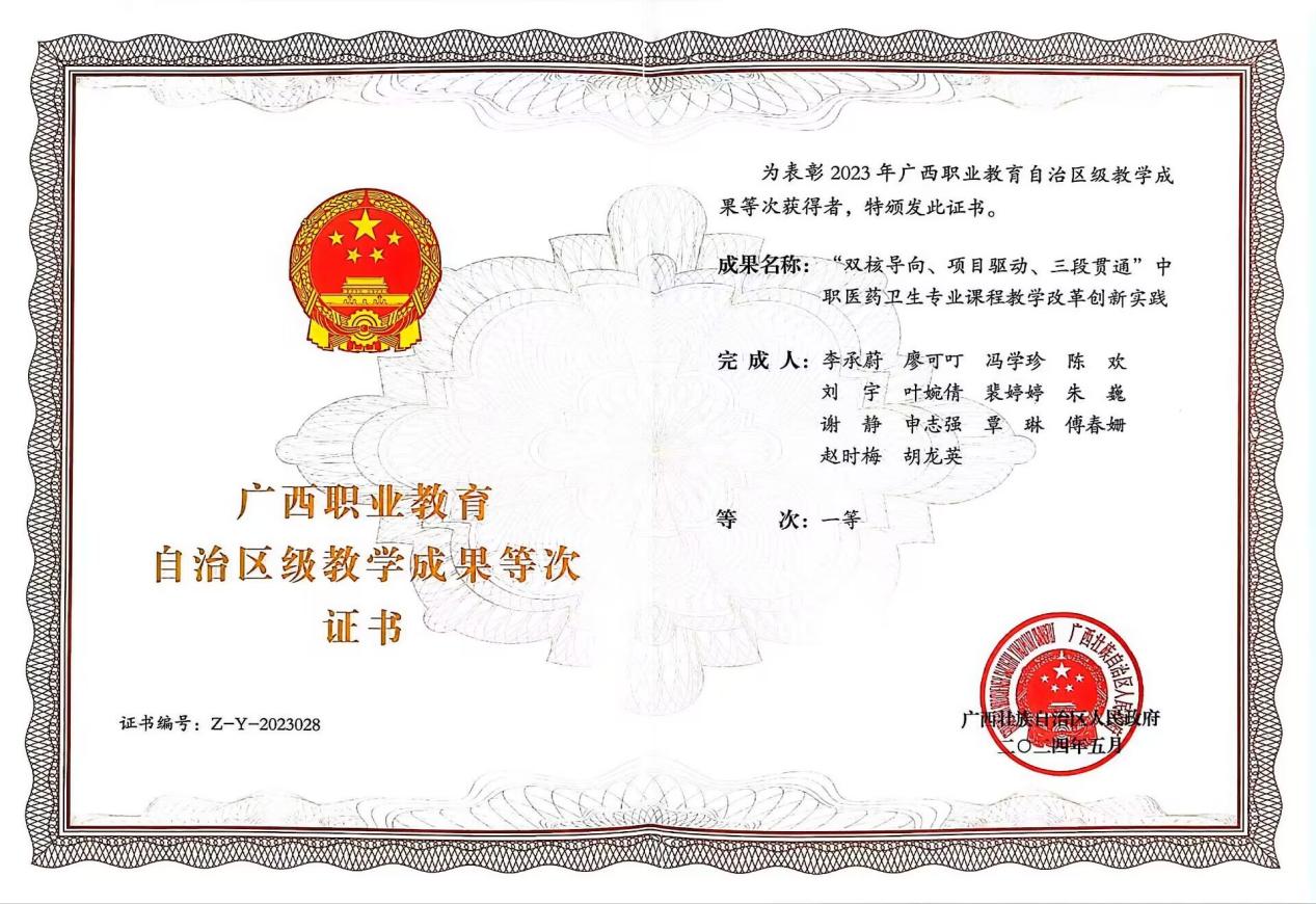 教师团队获广西职业教育自治区级教学成果等次一等奖