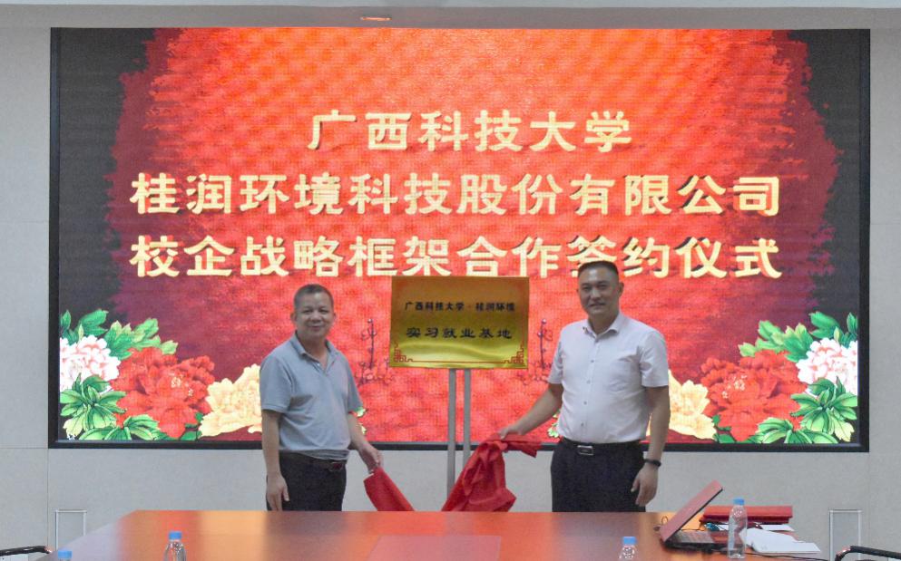开展校企交流合作。与广西壮族自治区中国科学院广西植物研究所、金秀瑶族自治县人民政府、广西绿源沣网络科技有限公司、柳州铠玥科技有限公司等近30家单位签订合作协议,与浙江项淮智能科技有限公司、桂润环境科技股份有限公司等企业挂牌产学研校企合作单位,开展人才培养和产品研发等合作和推广、科研平台共建和项目合作研发。