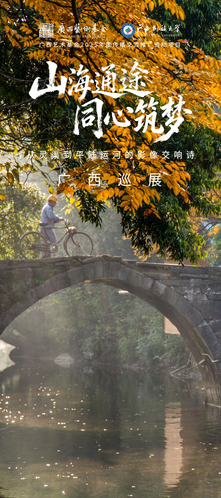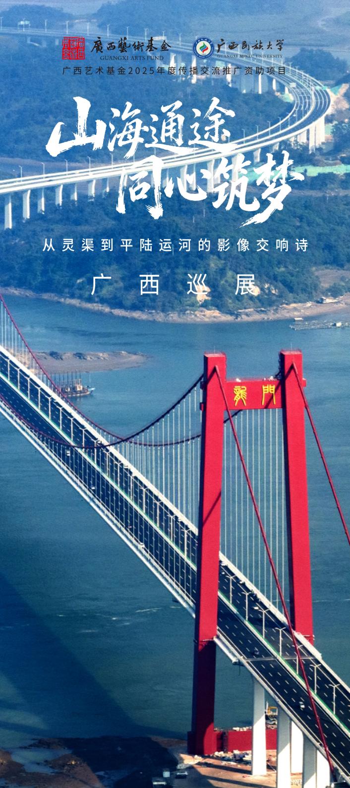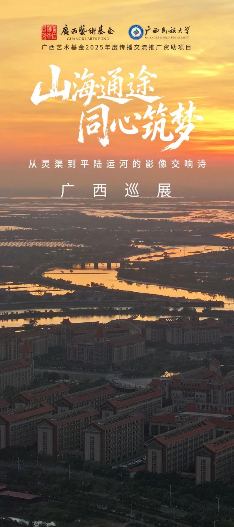 广西民族大学主办的2025年度广西艺术基金传播交流推广资助项目——《山海通途·同心筑梦——从灵渠到平陆运河的影像交响诗》广西巡展,以“山海通途·同心筑梦”为主题,通过110余件精选影像作品,展开一幅融历史性、艺术性与纪实性于一体的视觉长卷,生动诠释运河所承载的家国记忆、生态智慧与战略使命。